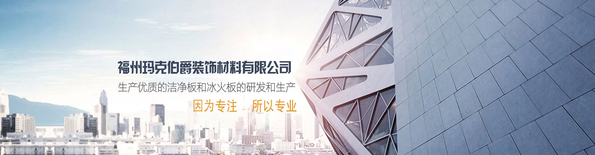 福州瑪克伯爵裝飾材料有限公司成立于2002年,是一家專業(yè)研發(fā)A級(jí)防火材料和生產(chǎn)內(nèi)外墻可替代裝飾材料的公司,主要價(jià)格生產(chǎn)各類工程裝飾用品:冰火板、醫(yī)用抗菌板、保溫一體板、隧道板等,產(chǎn)品具有防火防水、綠色環(huán)保、無毒、無煙無排放、抗菌、A級(jí)防火等多項(xiàng)技術(shù)優(yōu)勢(shì)。